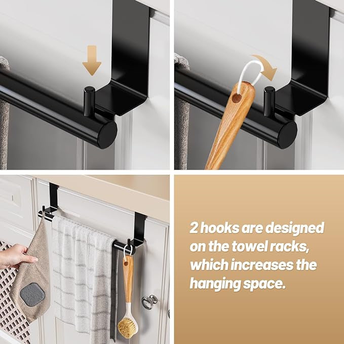Organize your towels and cleaning cloths with this space-saving over-the-door towel holder. Its sleek, extendable design is perfect for enhancing storage without compromising style.